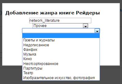 Если ввести код вручную, то жанры принимаются, но в меню выбора они так и не появились. И в начале этой темы, и у отдельных книг. Кэш и прочее чистил, не помогает.